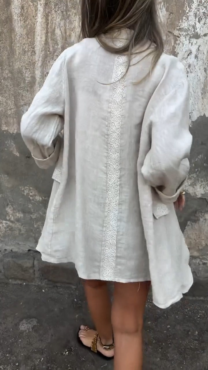 Damenblazer aus Baumwolle und Leinen mit offener Front