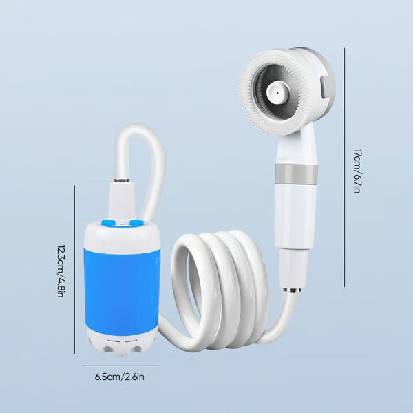 Der ideale Campingbegleiter: Diese tragbare Dusche ist Ihr perfekter Partner für die Aufrechterhaltung der Hygiene bei Outdoor-Abenteuern. Es ist für Campingausflüge, Strandausflüge und alle Situationen konzipiert, in denen eine praktische Duschlösung erforderlich ist.