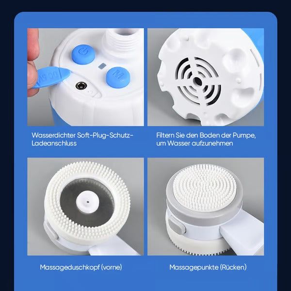 - 1* Duschkopf, 1* USB-Kabel, 1* Pumpe, 1* Handbuch, 1* Aufbewahrungstasche, 1* Duschständer