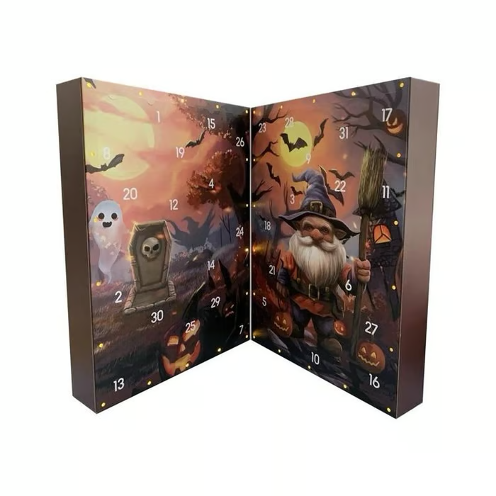 Doch das ist noch nicht alles – dieser 31-tägige Halloween-Countdown-Kalender steckt voller gruseliger Überraschungen! Jeden Tag enthüllen Sie einen neuen Gnom oder ein neues Accessoire und verleihen Ihrem Halloween-Fest einen Hauch von Geheimnis und Spaß. (Wer weiß, welche gruseligen Überraschungen hinter jedem Türchen warten?)