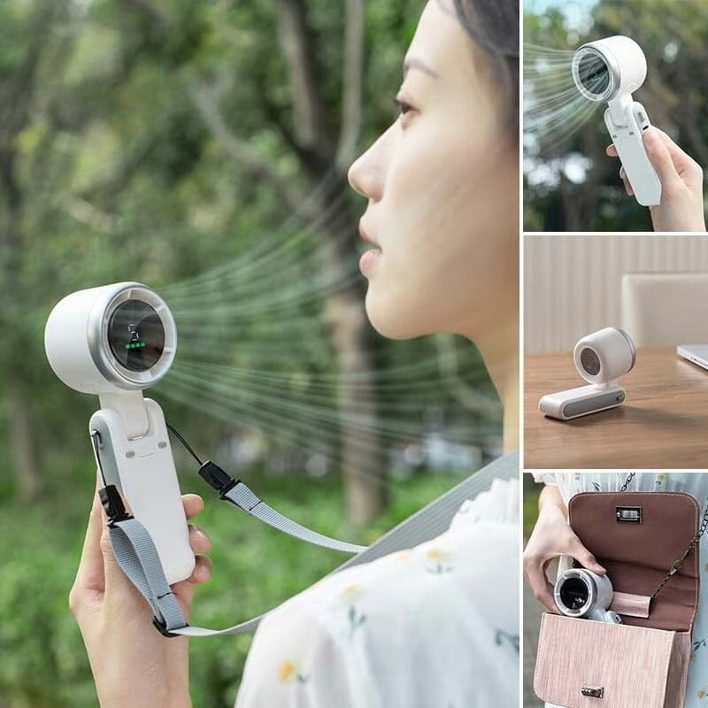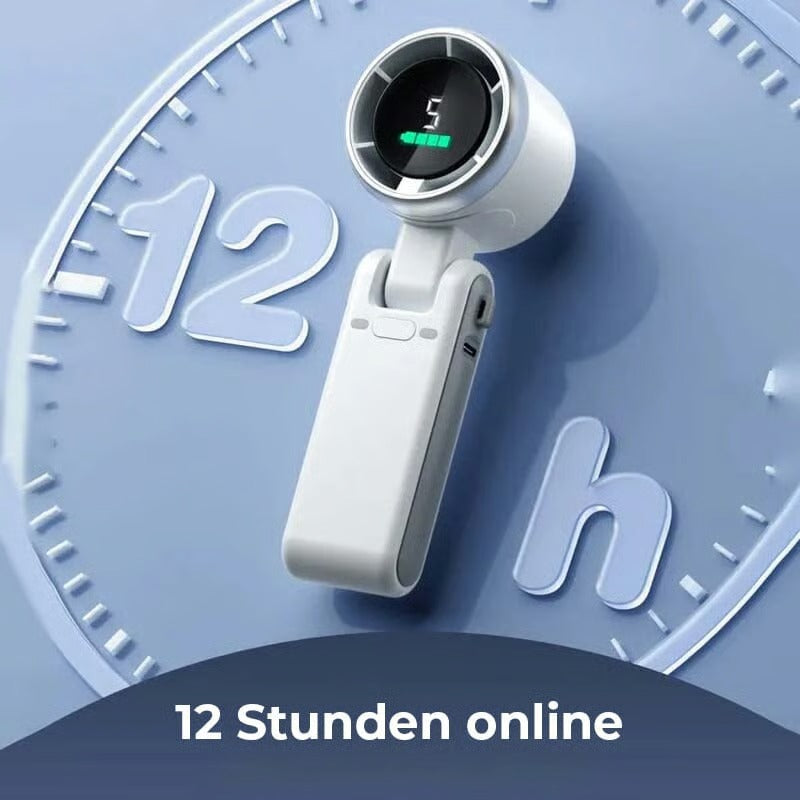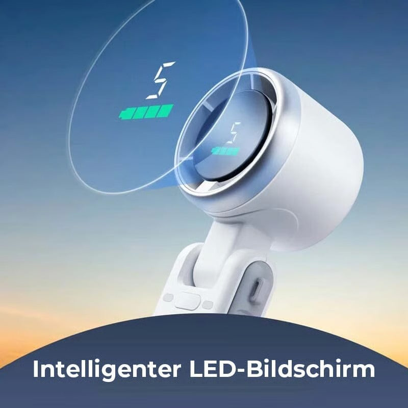 ✅ 3-in-1-Design – Nutze ihn als Handventilator, Nackenventilator oder Tischventilator. Perfekt für Zuhause, unterwegs oder draußen.