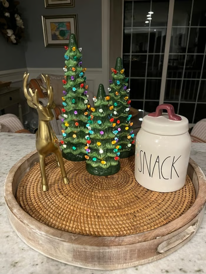 Dieses Weihnachtsbaum-Set aus Keramik ist sorgfältig gefertigt und verfügt über handgemalte Farben und glänzende Oberflächen, um ein wirklich einzigartiges Dekor zu schaffen. Maximieren Sie die Farbbrillanz und den Glanz, ohne sich zu verformen, zu knacken oder zu verblassen.