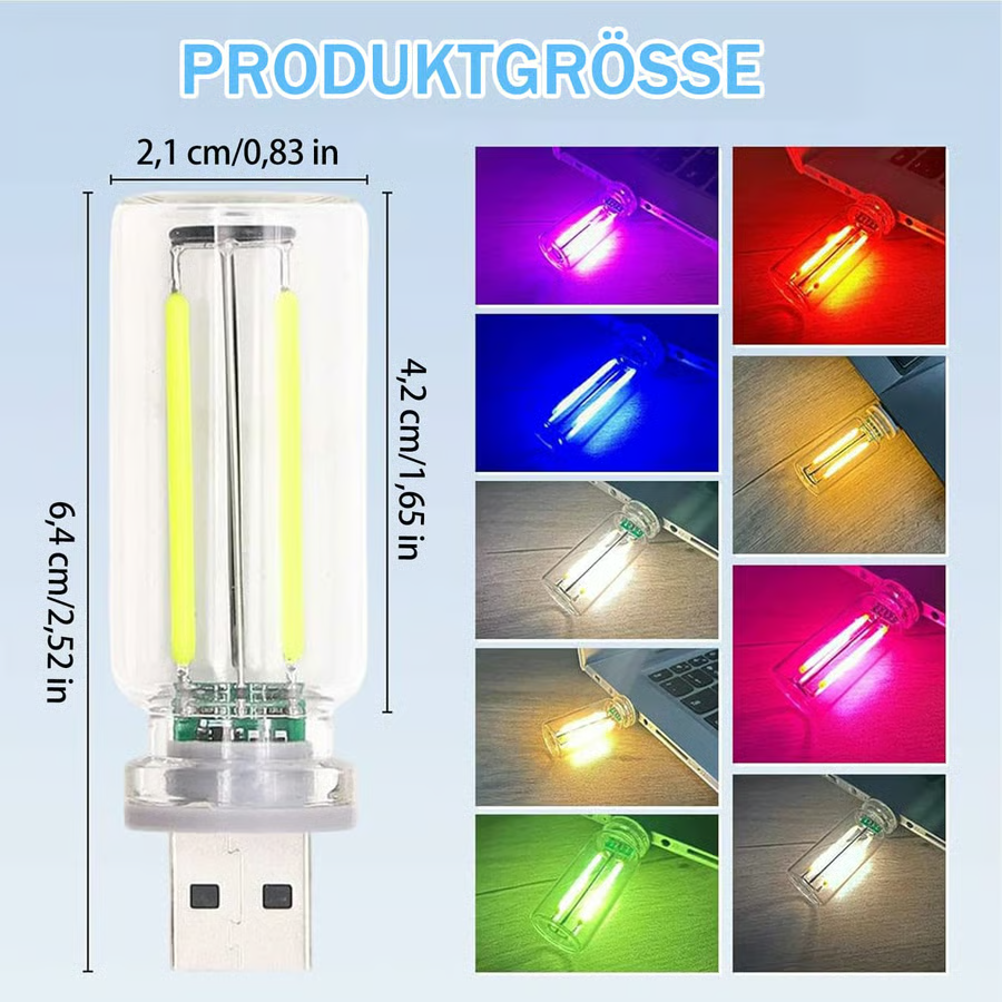 Dieses USB-Nachtlicht verfügt über eine Vielzahl von Farboptionen. Aufgrund seines geringen Stromverbrauchs und der geringen Wärmeentwicklung kann es sogar langfristig als Zusatzbeleuchtung für Fahrzeuge und den Innenbereich verwendet werden.